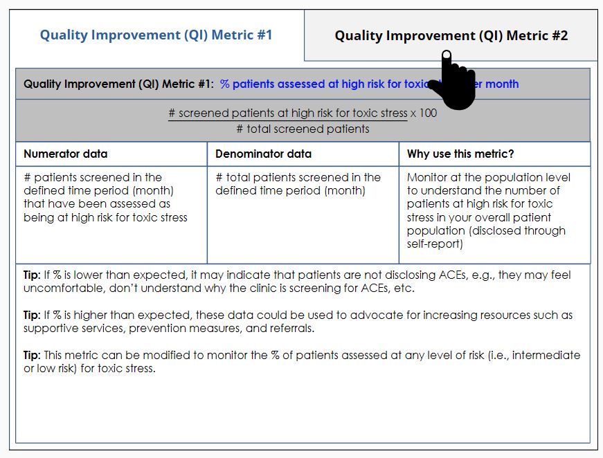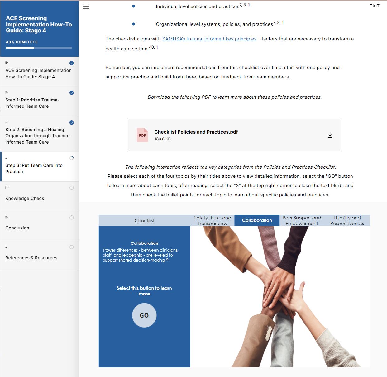 I contributed to the development of two out of the four-stage implementation guide that outlines practical steps for ACE screening and toxic stress response. The guide supports clinics in preparing their teams, designing workflows, using data systems, and fostering trauma-informed, equitable environments.