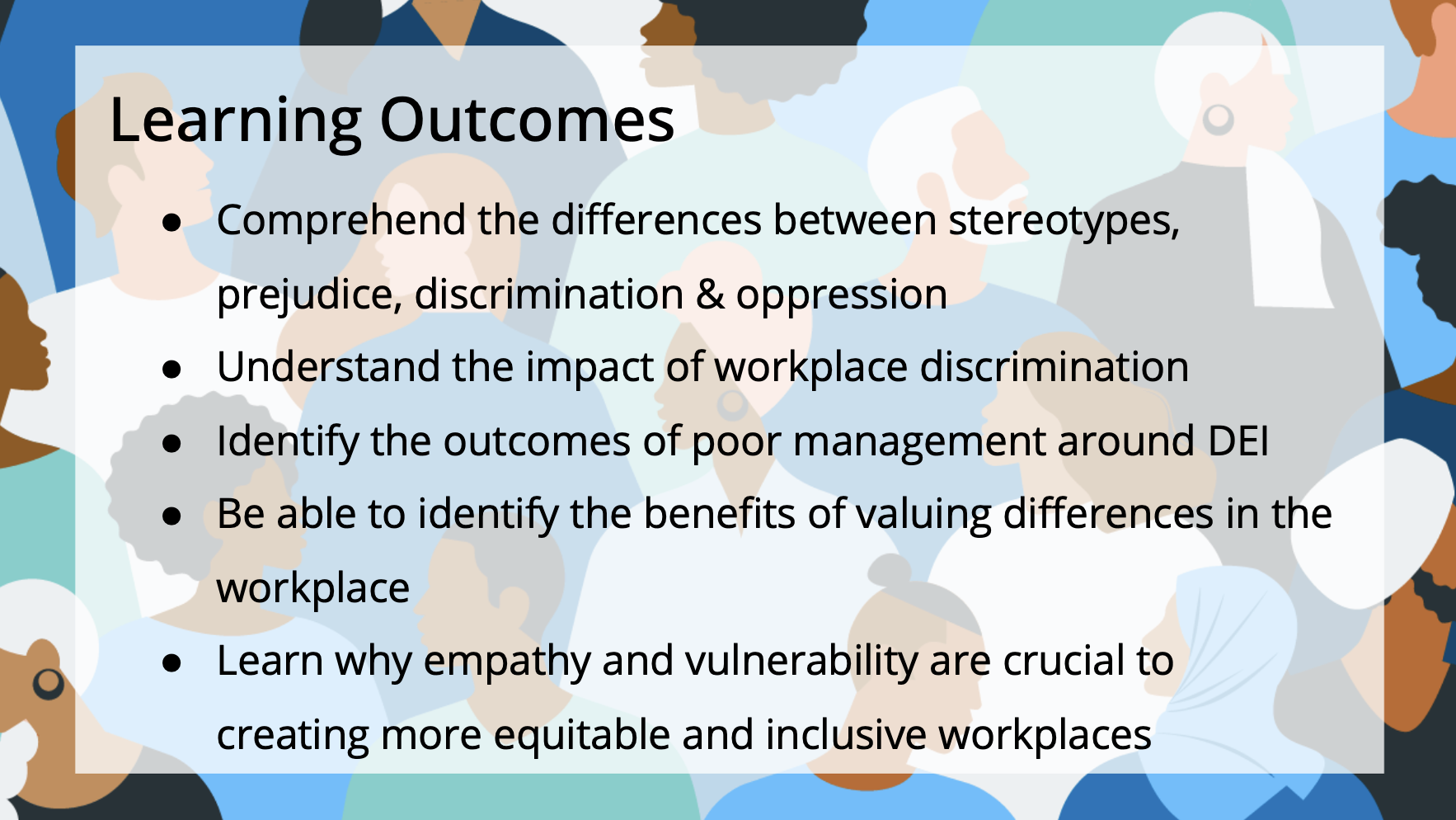 I collaborated with stakeholders to design a scenario-based training module focused on inclusive leadership. The slide deck included real-world examples to encourage reflection, vulnerability, and open dialogue around DEI challenges in the workplace.